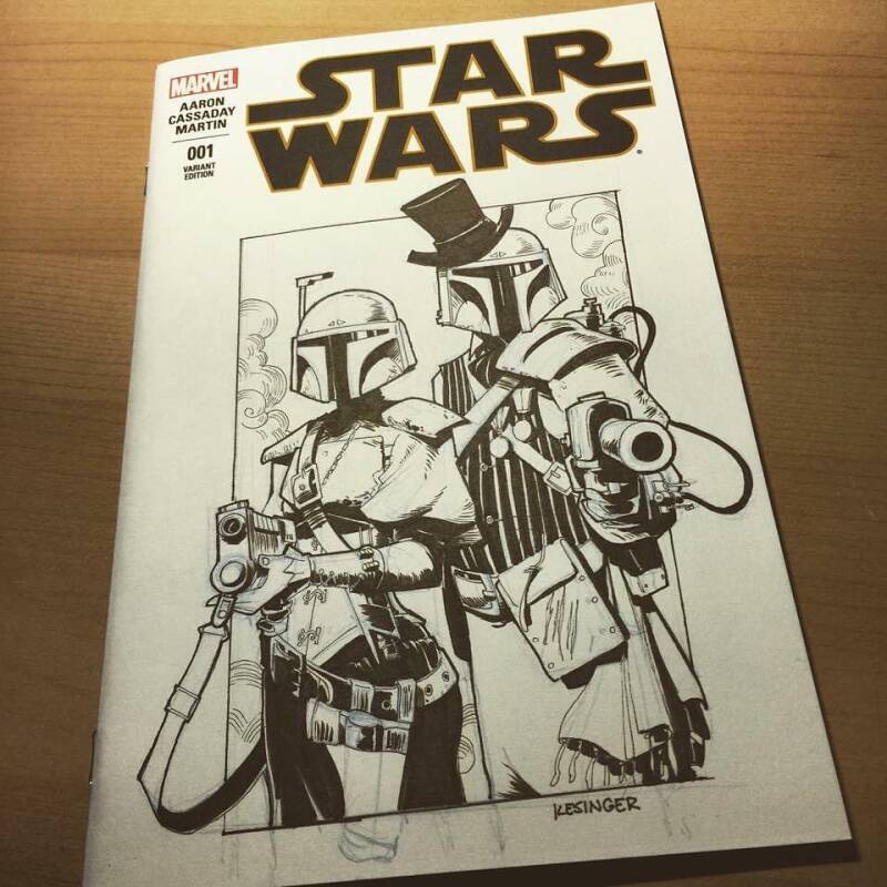 Maar net als op zijn Twitter pagina, is het daar over het algemeen erg stil de laatste tijd, terwijl hij op zijn Instagram pagina constant zijn recente werken deelt! Zoals deze stap-voor-stap Star Wars illustratie, Leia met Ewok , Last Jedi en Spirited Away Mash-up en een toffe comic cover commission, om het in het Star Wars thema te houden...