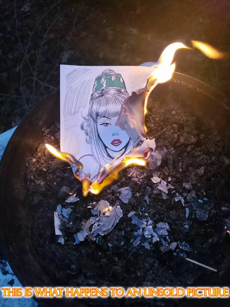 Op sommige afbeeldingen zie je een tekst staan die vertelt dat je eenmalig de kans hebt deze illustratie te kopen, anders gaat de fik erin! 🔥🔥🔥