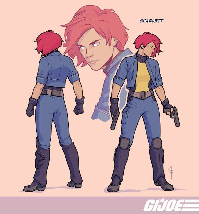 Very brief #GIJonday today, since I have a rewrite pile-up! Here's a closer look at SCARLETT and DUKE. From my notes to Chris on Scarlett: "Head instructor of #GIJoe, w/Duke. Scarlett is tough, incredibly well-trained and has an undertone of rage that she keeps in careful check."