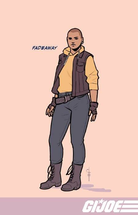And rounding out our team is FADEAWAY, another new character. Once, she was a coder... for COBRA TECHNOLOGIES. Now she fights against them, in the ranks of #GIJoe!