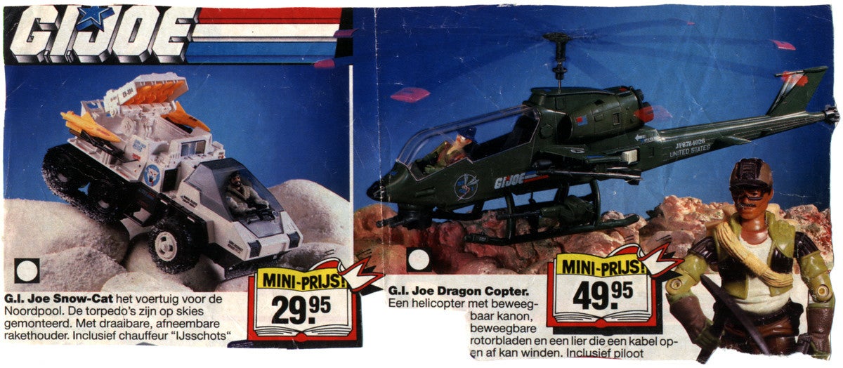 Niet alleen Hasbro zorgde voor de promotie van G.I. Joe. Ook speelgoedwinkels of winkels met een speelgoedafdeling maakten in hun reclamefolders melding van verkrijgbare G.I. Joe voertuigen en actiefiguren. De bovenste vermeldingen komen uit Nederlandse winkels zoals Speelboom, Intertoys, Bart Smit en Blokker.