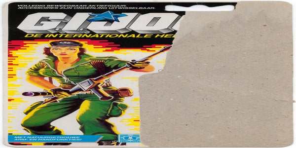Het artwork van Lady Jaye is volledig identiek aan de Amerikaanse verpakking, met uitzondering van de achtergrond rond het actiefiguur die in onze landen geen vuurzee is maar een thermisch hitteveld dat in de VS vanaf de reeks van 1986 te zien zou zijn. De Nederlandse en Belgische dossiergegevens zijn identiek aan de Amerikaanse uitgave, met uitzondering van de geboorteplaats. Omdat Lady Jaye ook tot het assortiment van 1988 behoorde, bestaan er twee verschillende verpakkingen. Bij multimedia staat haar tweede verpakking afgebeeld.