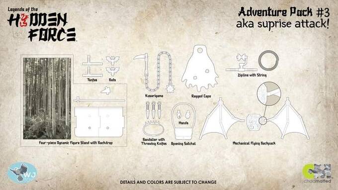 Upgrade de vaardigheden van Clan Aka met deze extra wapens en infiltratiehulpmiddelen. Perfect in combinatie met de Kickstarter Exclusieve Kyonshii 3-pack, maar ook bruikbaar voor elke groep ninja naar keuze!