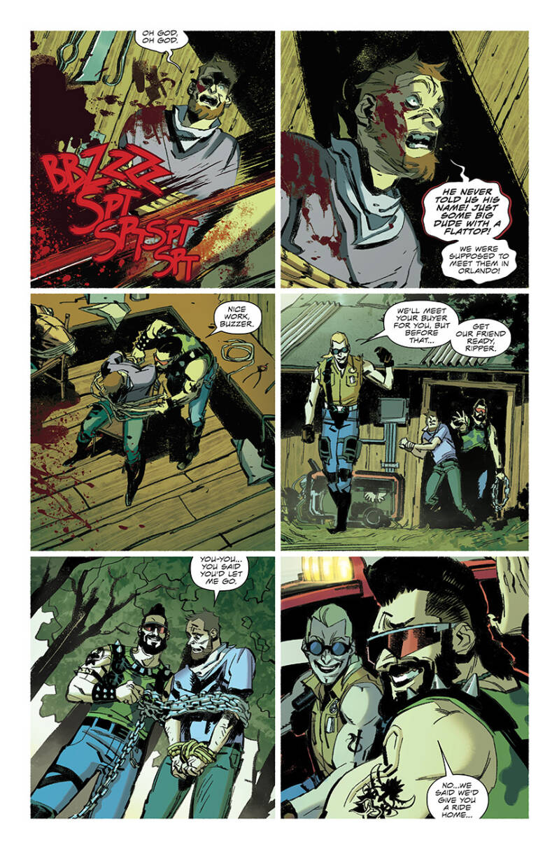 Let’s cut to the chase — the Dreadnoks are here! After the first issue of Cobra Commander gave fans a look at Megatron’s first meeting with the titular G.I. Joe villain, Cobra Commander #2 offers a more grounded albeit equally iconic antagonist in the the fan-favorite band of swamp rat mercenaries. Check out a huge preview of the issue’s pages (from writer Joshua Williamson and artist Andrea Milana) as well as its variant covers below, after these official deets…